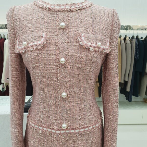 라운넥 진주 포인트로 여성스러움을 강조하는 원피스입니다