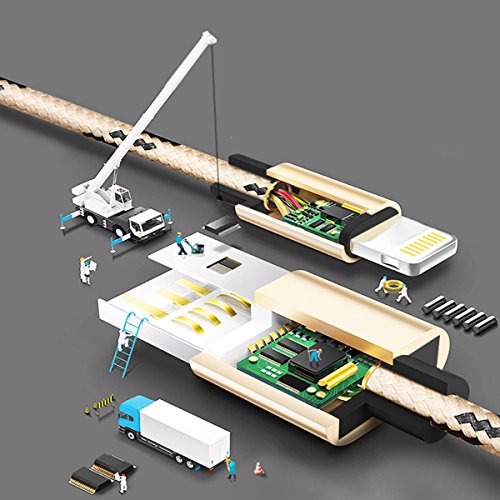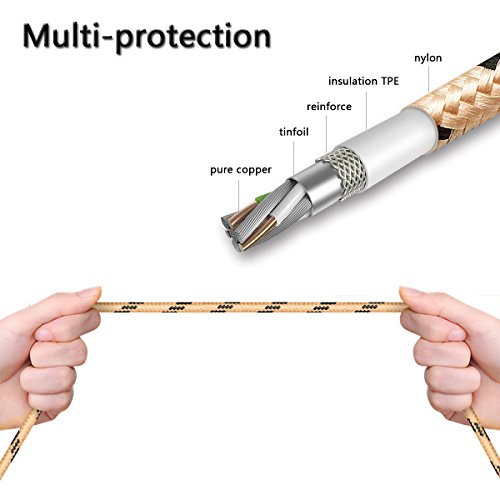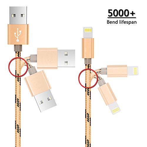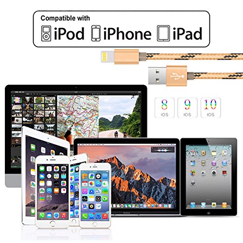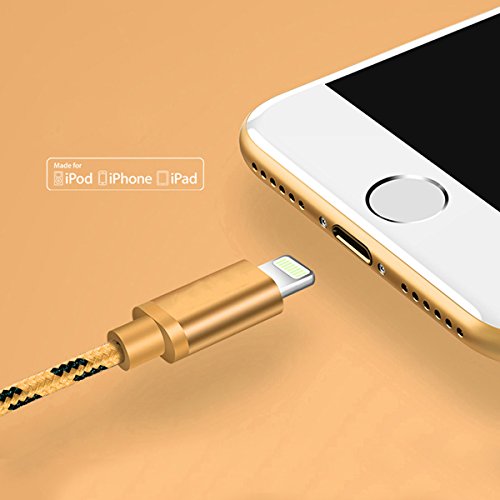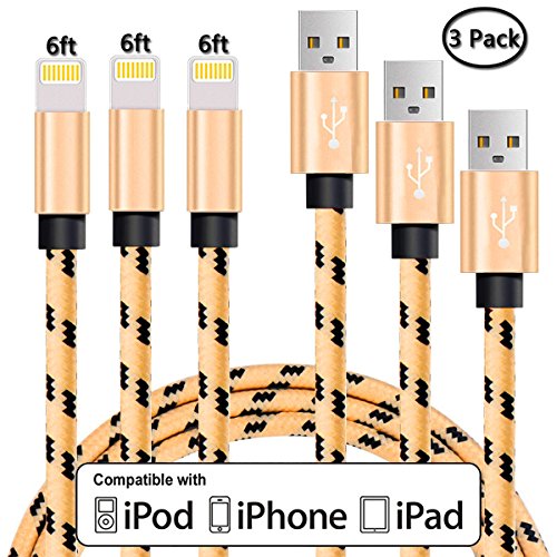 TKONG Nylon Braided Lightning Cables to USB Charging Cable for iPhone 7/7 Plus 6/6s Plus 5s/5, iPad mini / Air / Pro / iPod touch, 3 Pack (6/6/6 ft Golden)
