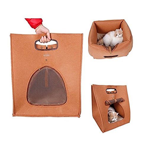 Sunny&Lucky Pet Cat Carrier, Folding Portable Wool Felt Cave Bed Travel Bag For Cat Puppy 3 In 1 Multifunctional Nest Felt Walking Bag