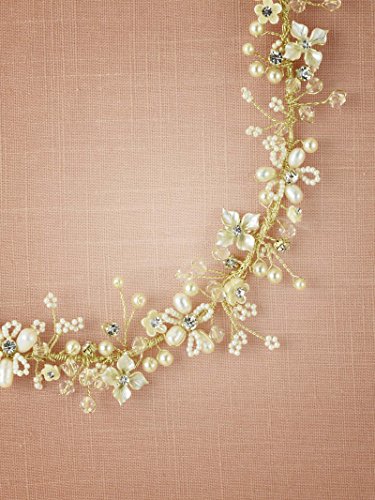 Binding : Apparel Product Description About Product: Transparent beads, pearls, and a subtle display of crystals create delicate flowers on this ethereal headband. Secure the band with combs or ribbon to create just the right look for your special day. Wear on your crown in tiara-style or place around an updo for a sweet embellishment. Dimension: Length: 12.2', Width: 1.2' There are more of our beautiful items. You can search Remedios Headband on amazon to see more Remedios' style.