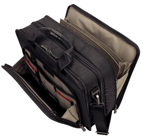 - Feature : Interior organization includes fan-file dividers, front organizational panel contains a full-length zippered mesh pocket, tricot-lined electronic device pockets, business card pockets, usb flash drive pockets, pen loops and key fob / Exterior organization includes full-length rear zippered pocket and a quick-access pocket with electronics-friendly magnetic closure / Expands 25 inch for additional capacity / Lockable ykk raquet coil zippers / Rear pocket coverts to a sleeve for sliding over wheeled handle systems
