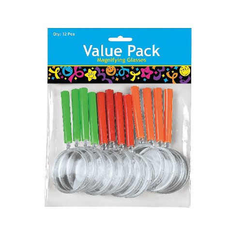 -. Title : Magnifying Glass, Assorted Colors Pack of 12, Size 4 1/4", Plastic