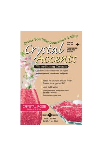ReleaseDate : 2011-05-15 Studio : JRM Chemical, Inc. Publisher : JRM Chemical, Inc. Binding : Lawn Patio Product Description Crystal Accents, Crystal Rose color. 1-ounce bag. Water-storing crystals. Ideal for candle, silk and cut flower arrangements. Use for centerpieces, weddings, birthdays, parties and home decor. Just add water. 1-ounce makes one gallon. Non-toxic. 0