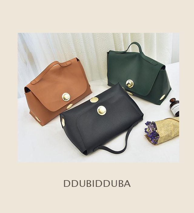 Gold button simple tote 4color college bag black brown white women room