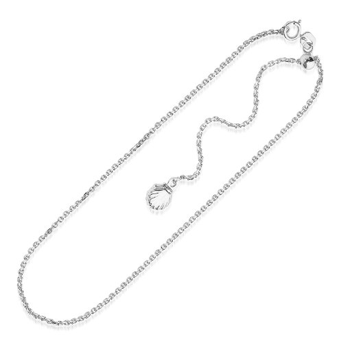 -. Title : 14K White Gold Shell Accent Cable Link Adjustable Anklet