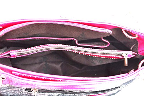 -. Feature : front rhinestone cross,Top zippered closure, magnetic flap pockets on sides, dual straps / Zippered middle divider with wall zippered pocket, two slip pockets, Back gun carry pocket / Measurements: 12 1/2" x 8" x 4 1/2" approx., 11" drop straps, / Wallet-Zip around closure, zippered pocket inside, 8 slots, 3 bill reciepts slots / Removable wrist strap,Measurements" 7 1/2" x 4"