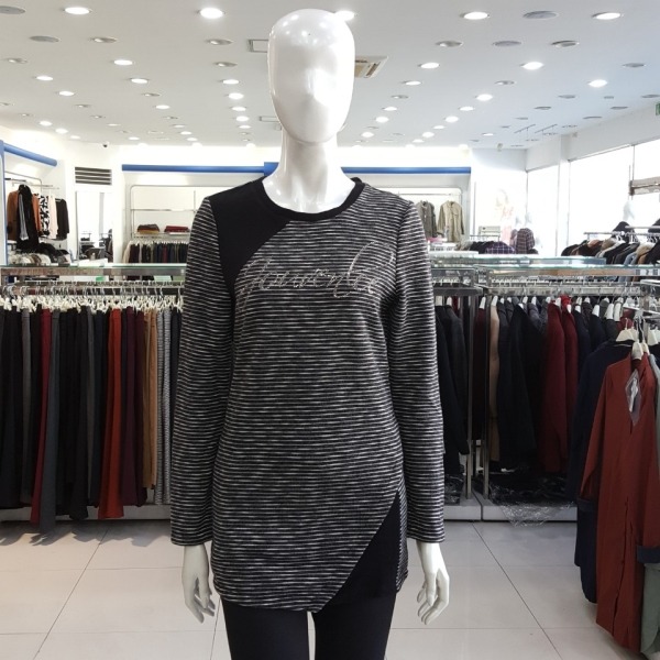 스트라이프 라운드 니트티셔츠-CA7W0-WKL020-433