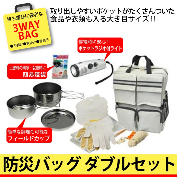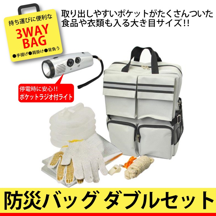 원본상품명: 防災セット 3WAY 防災バッグ ダブル 6点セット 防災グッズ 防災リュック 防災 グッズ セット 防災袋 非常用持ち出し袋 非常用持出し袋 家族 リュック バッグ 避難袋 災害 地震 震災 避難