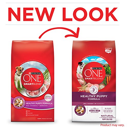 Your family's new puppy has unique needs, and you can help tend to those needs when you serve him Purina ONE SmartBlend Natural Healthy Puppy Formula dry puppy food. Real chicken is the #1 ingredient, and rice and oatmeal round out this recipe to give your growing puppy the nutrition he needs. Every serving of this dry puppy food contains DHA, a nutrient also found in mother's milk, to support his vision and brain development, and an antioxidant blend helps to promote a strong immune system. This puppy formula is highly-digestible, and natural sources of glucosamine help support healthy joints. We use zero fillers to ensure that each high-quality ingredient has a purpose. Give your playful puppy the 100% complete and balanced nutrition he needs to support his whole body health when you fill his dish with this premium puppy food formula. There's no need to make your puppy wait for dinner when you can get it quick with an order of Purina ONE dry puppy food from Amazon.com.Feature