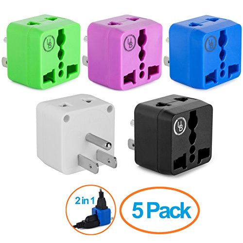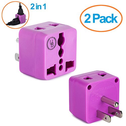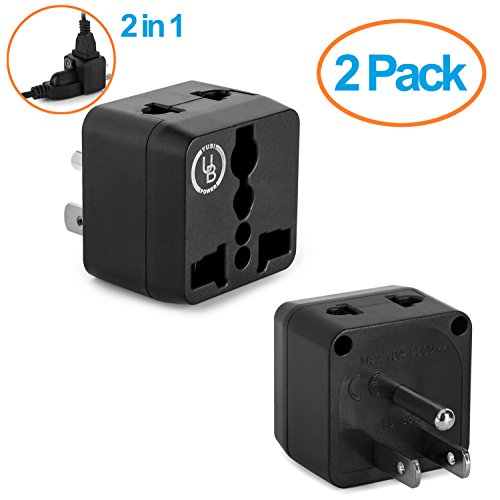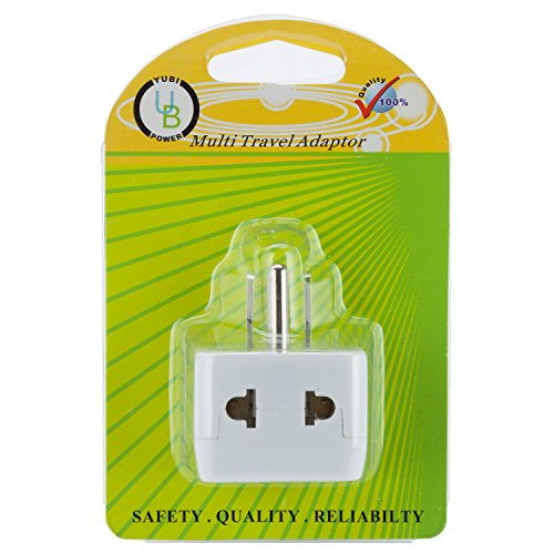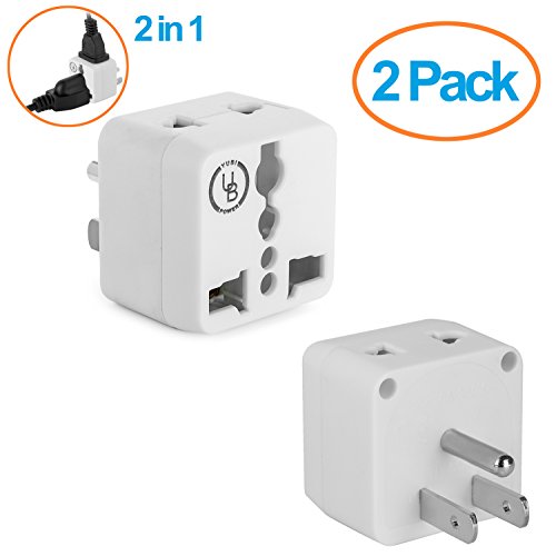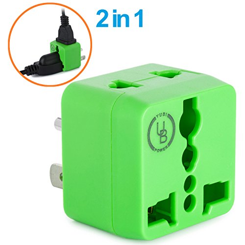 Yubi Power 2 in 1 Universal Travel Adapter with 2 Universal Outlets - Built in Surge Protector - White - Type B This Yubi Power travel plug adapter has 2 universal outlets that allow you to plug in most plug types from around the world, excluding the larger South African type M.