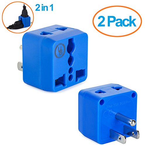 Perfect travel adapter with 2 universal outlets (2 prong & 3 prong)