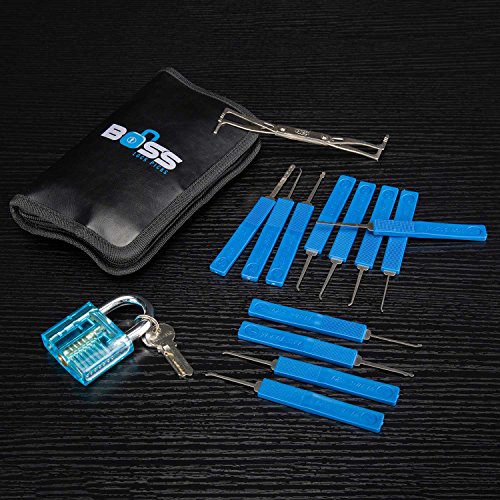 Premium Titanium Lock Tool Set with Transparent Blue Pad Lock (29 Piece)
