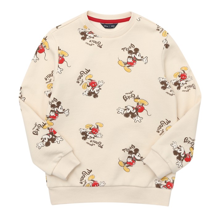 TC 기모 쮸리 원단에 미키 전판 나염을 사용한 맨투맨