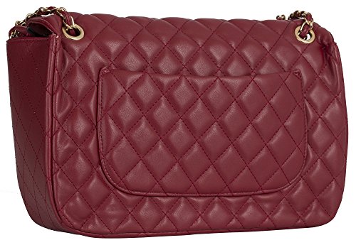 -. Feature : Lightweight soft faux leather Large/medium size quilted shoulder bag with with top zip opening under the flap / Twist lock clasp on flap and a open slip type back pocket / Large Bag - Height 21 cm (8.2"), Usable Height 16.5 cm (6.2"), Width 29 cm (11.5"), Depth 8 cm (3"), Strap Drop 30 - 55 cm (12"-21.5"), weight 540 grams (1.19 pound) Medium Bag - Height 17 cm (6.5"), Usable Height 12 cm (4.7"), Width 23.5 cm (9"), Depth 8 cm (3"), Strap Drop 30 - 55 cm (12"-21.5"), weight 440 grams (0.97 pound) / Fabric lining inside with two open pouch pockets and one zip pocket on front and back wall of bag / Gold tone fittings on the long strap providing a classy look to the bag