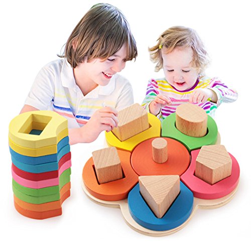 Education Toy: Unique Flower shape and graduated color wooden blocks makes it more attractive, perfect to help kids improve color recognition abilities and brain development, develop baby identification ability.