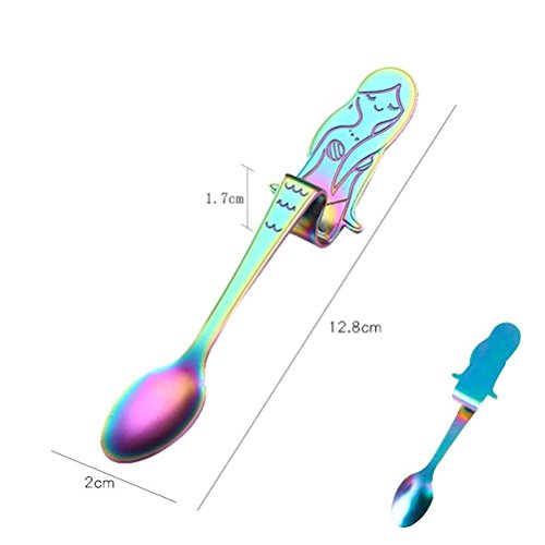 Material: stainless steel. Package Include 4 PCS Mermaid Spoons. Size:12.5cm. Mermaid Design: Lovely cartoon mermaid modelling design, easily matches with most of the coffee mugs and cups. Hanging on Cup: They can hang the spoon on the rim of the cup. Note: Please be careful when children use. Application: Suitable for using in office,home and coffee house whatever for dinner,coffee,tea or dessert break time. 0 |