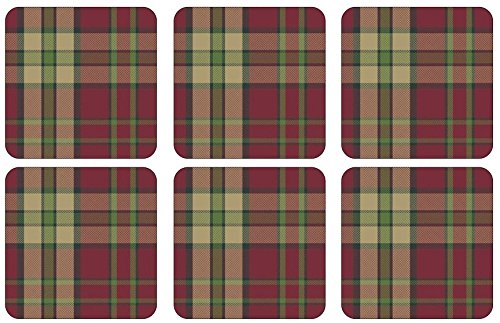-. Title : Pimpernel Glen Lodge Tartan Red Coasters - Set of 6