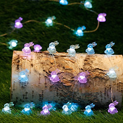 Easter Decorations Lights, Impress Life Rabbit Bunny Festive Lights Battery with Remote for Indoor Outdoor Wedding Camping, Birthday Bedroom House, Patio, DIY Home Parties Decor
