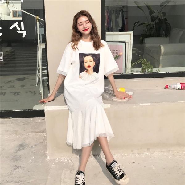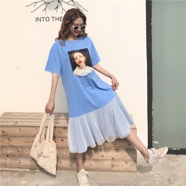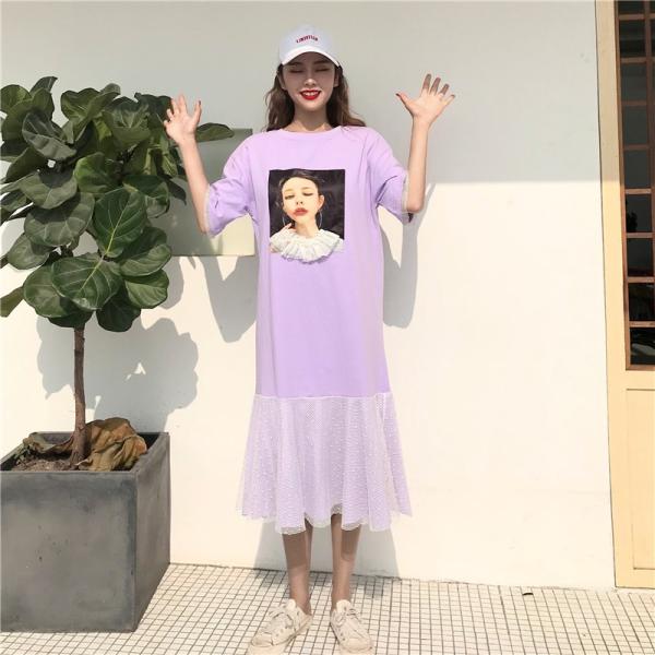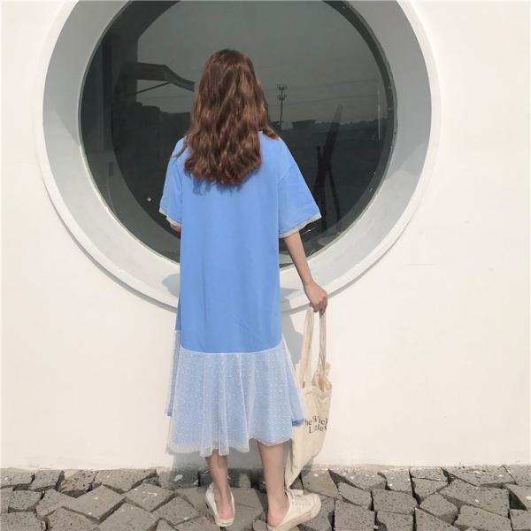 裾部分がメッシュ切り替えのシンプルなロングワンピース。