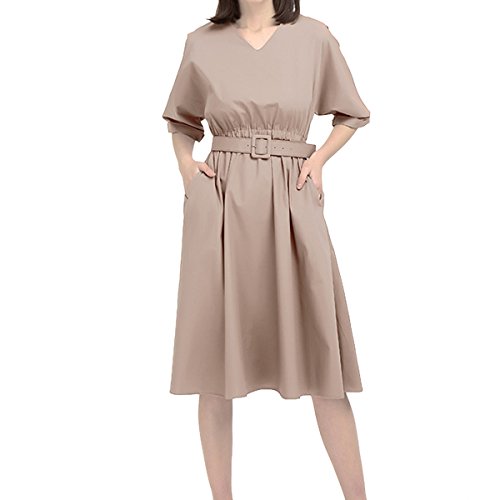 -. Title : ベルト付き Vネック ワンピース レディース 春 夏 半袖 ひざ丈 ベージュ テラコッタ Le ciel clair (ル シェル クレール)