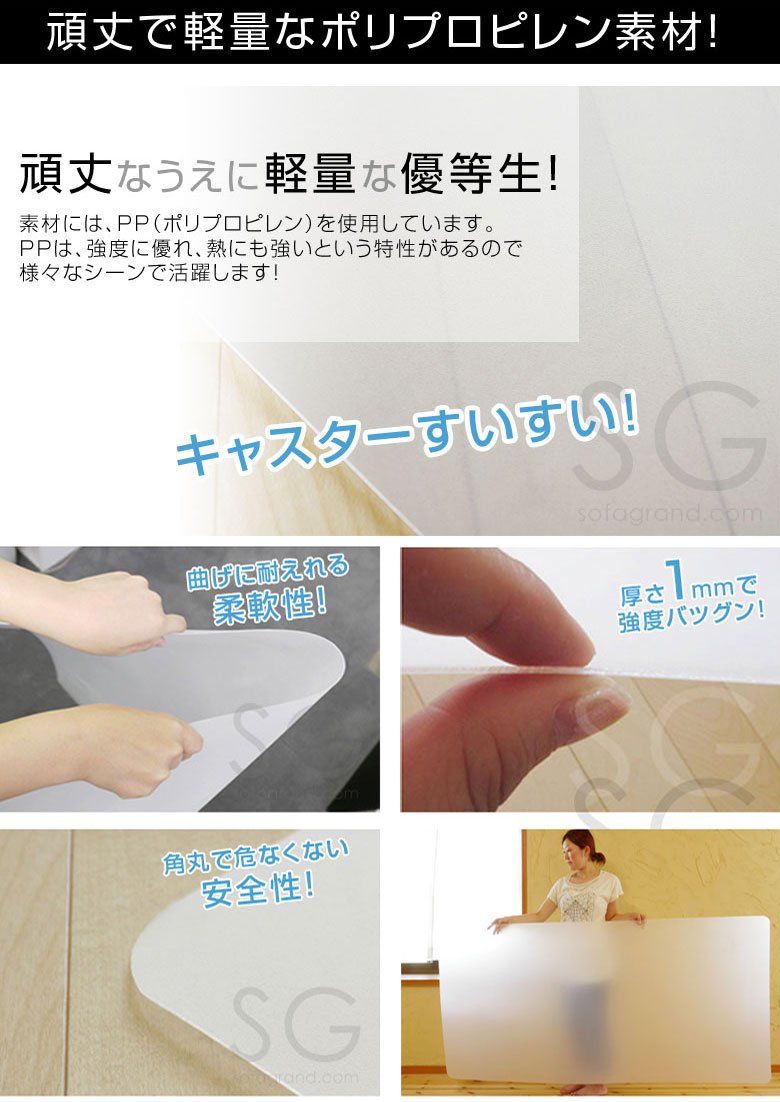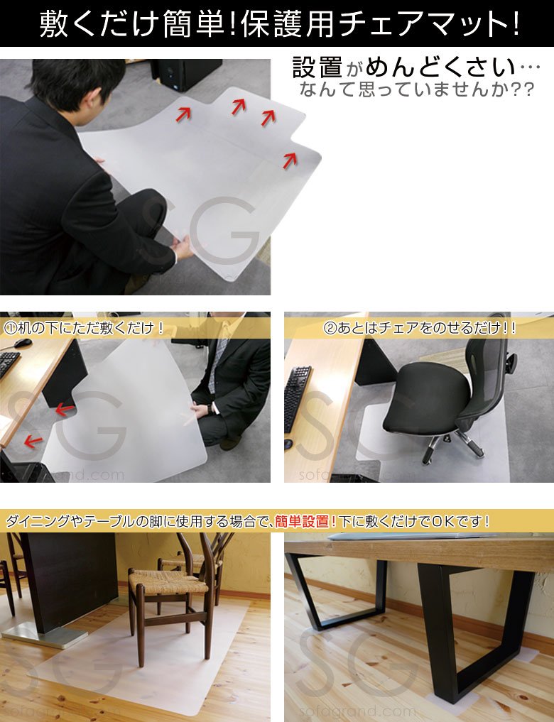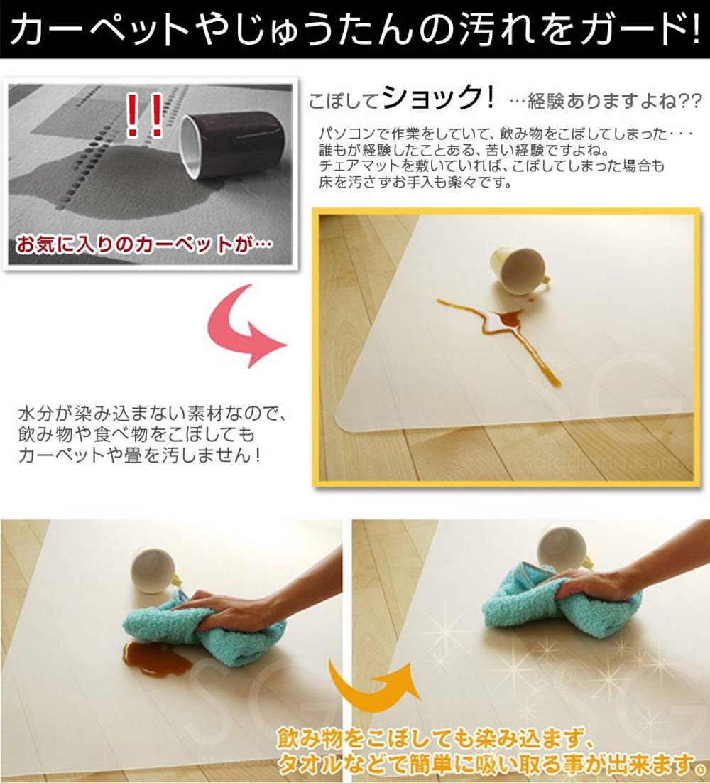 Flooring, folding, spreading on a thin carpet to prevent floor scratches and dirt by the casters of the chair! Clear mat not only protects the flooring from scratches but also makes the caster rotate smoothly.