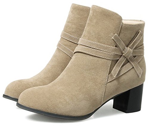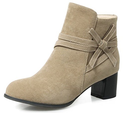 (IDIFU)/Women's/Boots/DIRECT FROM USA/IDIFU Women's Sweet Faux Suede Round Toe Block Mid Heel Side Zipper Ankle Booties