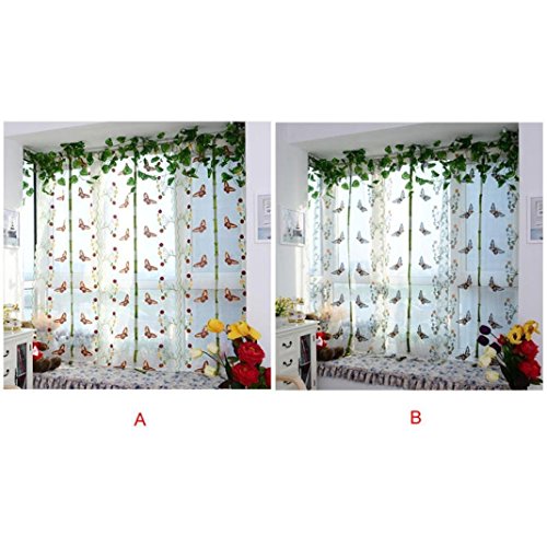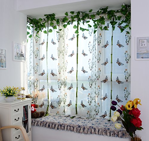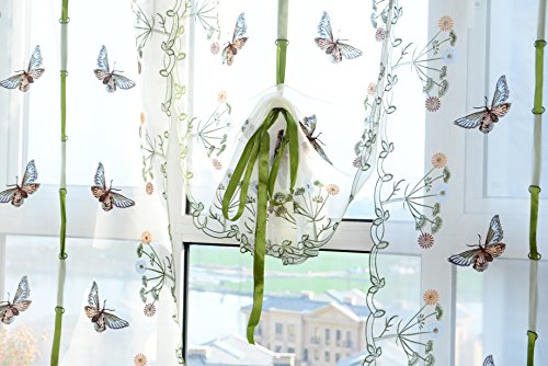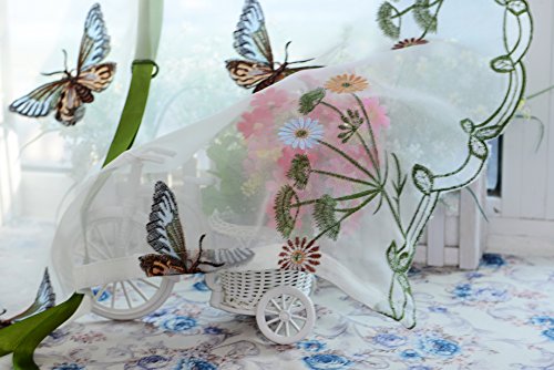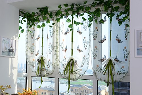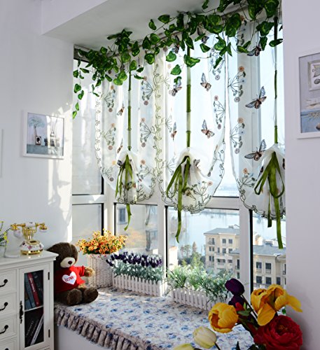 ICCO0 1 Piece Pastoral Tulle Window Roman Curtain Embroidered Sheer For Kitchen Living (B)
