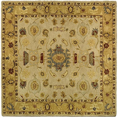 SAFAVIEH ANATOLIA COLLECTION AN543C HANDMADE IVORY AND GOLD WOOL SQUARE AREA RUG, 6 FEET SQUARE (6' SQUARE)