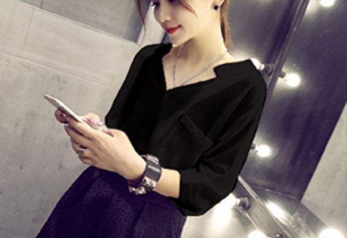 -. Title : (シーデフ)cdef レディース 前後 Vネック スキッパー シフォン ブラウス シャツ トップス カットソー 七分袖 105