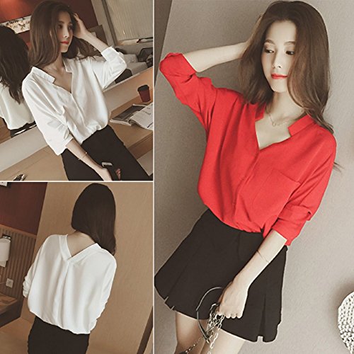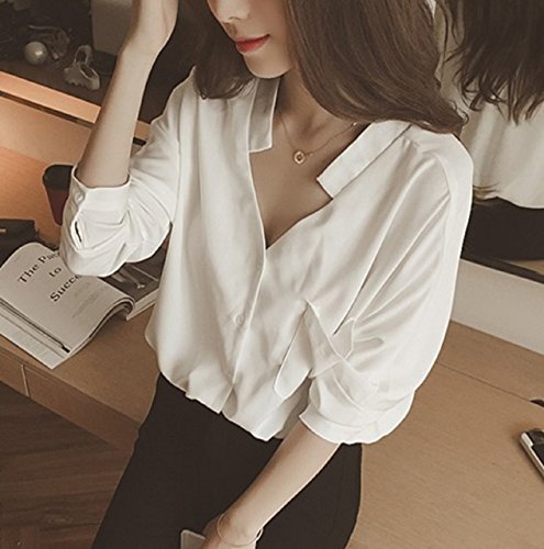 -. Feature : 【 カラー・2色 】白 ・黒 【主な素材 】 ポリエステル 【サイズ】M:胸囲96㎝、着丈65㎝、袖丈69㎝ ・ L:胸囲100㎝、着丈66㎝、袖丈70㎝ / レディース 服 から スポーツファッション まで 幅広く多彩な場面・シーンでの活躍を応援する レディースファッション cdef ブランド ( シーデフ ) です。 / シンプル で オシャレ な デザインの シフォン ブラウス です。フェミニン で ふんわり 上品 デザイン! フロント と バック 共に Vネック 使用で セクシー で女性らしさを より演出してくれ 首元 を スッキリ させてくれます。 / どのような 小物 ( ネックレス ピアス イヤリング ブレスレット リング 指輪 サングラス スカーフ ショール ストール 腕時計 帽子 )にも合わせやすく 20代 30代 40代 50代 と 年齢を問わず 幅広い年齢 層に オシャレ を楽しんでいただけます。デイリー 使用の 部屋着 から フォーマル な お出かけ 女子会 謝恩会 オフィス などにご使用いただけます。 / 少し小さめのデザインなので、ワンサイズ大きめの購入をおすすめしております。
