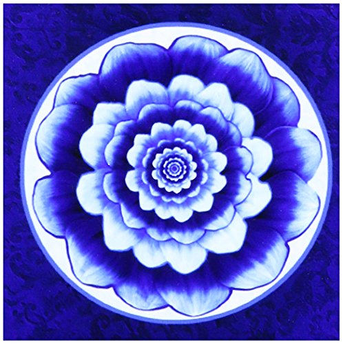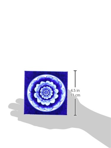 3dRose cst_31753_3 Pastel Blue & Cobalt Fantasy Mandala Flower on Royal Blue Background Ceramic Tile Coaster (Set of 4)