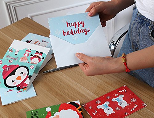 Studio : Juvale Publisher : Juvale Binding : Office Product Product Description Share the joys of the yuletide season with your friends, acquaintances, and loved ones. This assorted pack of 48 all-occasion greeting cards will prepare you for all your card-sending needs! Cut the hassle of rushing to the store and overpaying for cards. This pack consists of 48 blank greeting cards to include your very own custom messages for corporate and personal use. Each card features one of 6 cute holiday designs. Make a statement with these thank you cards made of high-quality card stock that feels thick and sturdy. Each card measures at 4 x 6 inches and comes with corresponding envelopes. Ensure you have plenty of greeting cards on hand for when occasions arise. 0