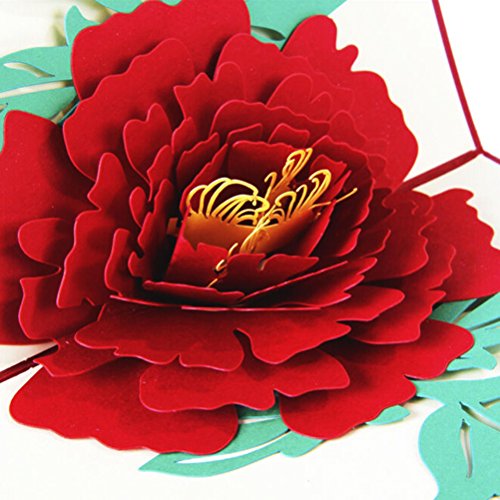 -. Feature : ZoCr Laser Cut Handmade Papercraft 3D Pop Up Peony Flower Birthday Cards. / Display Size: 5X6.1 Inches (12.5X15.5cm). / Including popup card,envelope and opp bag. / You can add your greeting words as whatever you needed. / Fantastic card for whoever you love.
