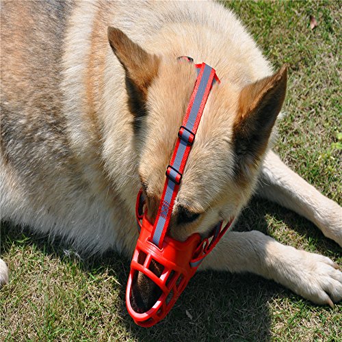 How to measure your dog for these muzzles: Measure the circumference midway between the tip of the snout and eyes, under the chin and over the top of your dog's muzzle. Size 1: Snout 7-8"(18-21cm) , Support /3.3-11 lbs(1.5-5kg) Size 2: Snout 8-10"(21-26cm),Support/8.8-27.5 lbs(4-12.5kg) Size 3: Snout 10-12"(26-30cm),Support 22-55 lbs(10-25kg) Size 4: Snout 12-13.5"(30-34cm),Support/49.6-82.6 lbs(22.5-37.5kg) Size 5: Snout 13.5-14.5"(34-37cm),Support/82.6-121 lbs(37.5-55kg) Size 6: Snout 15-17"(38-43cm),Support/121-154 lbs(50-70kg) JYHY is committed to providing each customer with the highest standard of customer service!90 Days money back,365 Days quality warranty!