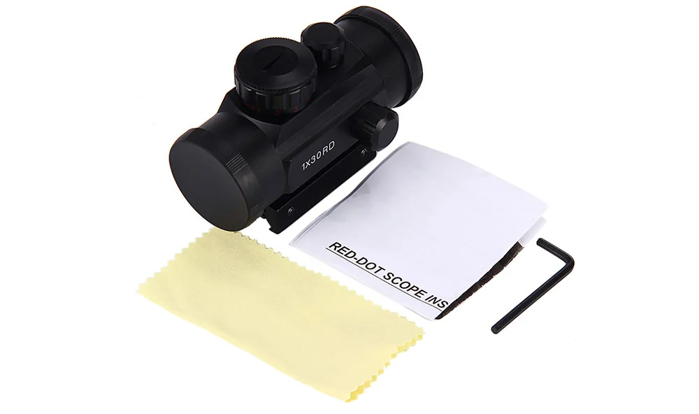 Package Contents: 1 x Tactical Holographic Red Dot Telescope Sight Scope, 2 x Lens Cap, 1 x Wrench, 1 x Cleaning Cloth, 1 x User Manual (English)