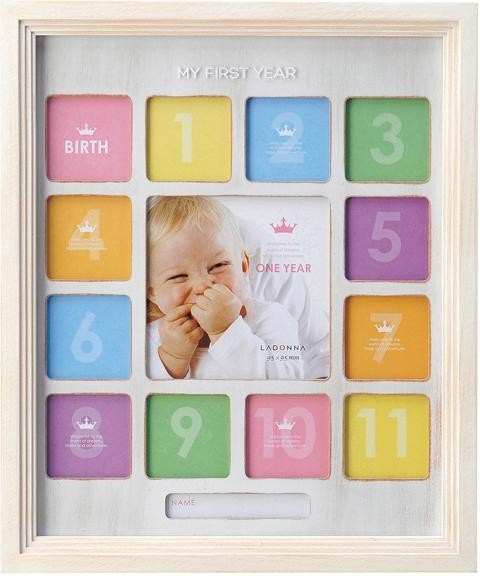 | 木のぬくもりがやさしい、新しい「12ヶ月ベビーフレーム」。 |