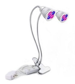 -. Brand : E&J Inspirations -. Feature : THE GROW LAMP: Each lamp contains 3 red LED lights and 2 blue ones. The body is made of aluminum alloy; providing strength and durability. The plug area and power switch are made of plastic. / EASY TO USE: This New lighting system clips to the side of any desk or counter; taking up very little space. Simply clip on and plug into any electrical outlet. With the dual switch, you decide if you want one light on or both. The Adjusting Gooseneck handles can be turned in all directions to provide the best angle for lighting. The Dual light heads can face the same direction or face opposite directions to cover a greater area. The dual lamp system provides greater coverage than before. / PURPOSE: This grow light is beneficial for use at every stage of plant growth from budding to blooming. The light emitted can help turn wilting plants healthy again and help provide a greater yield. Great for gardeners who love year round fresh herbs, indoor fresh flowers or getting a head start on sP.R.Ing crops that can be planted indoors and then taken outdoors after the frost. / THE RESULTS: Healthier and abundance in plants and crops. / GUARANTEE: 100% Money Back Guarantee. If you are not satisfied with your product, you may return it for a full refund within 30 days. We also provide a one year warranty for repairs. We are committed to providing excellent customer service and support. -. Label : E&J Inspirations -. Manufacturer : E&J Inspirations -. ProductGroup : Lawn & Patio -. ProductTypeName : SEEDS_AND_PLANTS -. Publisher : E&J Inspirations -. Studio : E&J Inspirations -. Title : Dual Head LED Plant Grow Light featuring Adjustable Neck, Double on/off Power Switches & a 10 Watt Light for Indoor Plants and Nurseries with a Spongy Desk Clip to easily clip-on to any surface edge