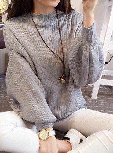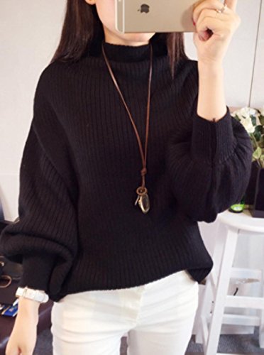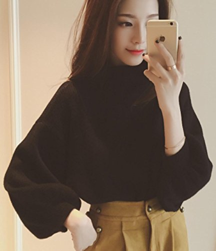 -. Feature : 【メイン素材】 ビスコース / 【カラー】 ブラック、グレー、カーキ / 【フリーサイズ】 着丈54cmバスト100cm 肩幅36cm / ふんわりゆったりシルエットでバルーン袖がかわいい ボトルネックの長袖ニットセーターです。 / こなれ感のあるニットで着心地もよく体型も程よくカバーしてくれトレンド感あふれるスタイルに決めてくれます。