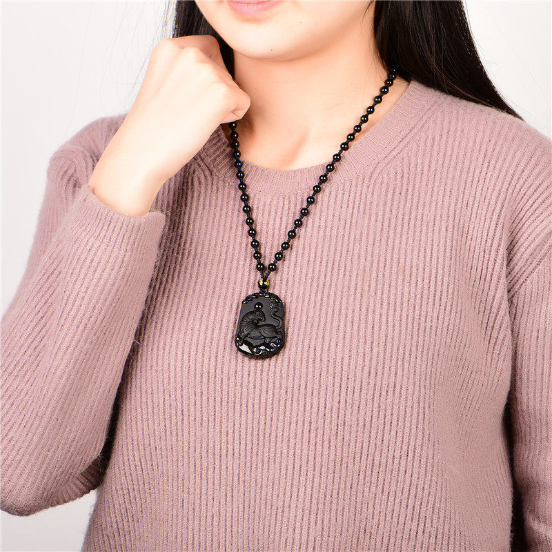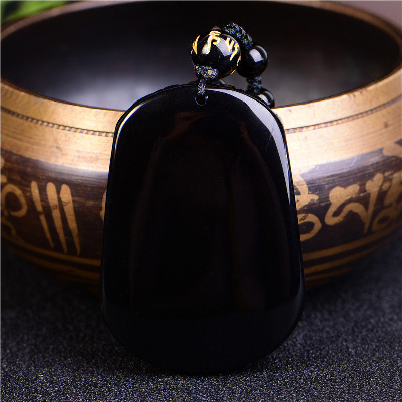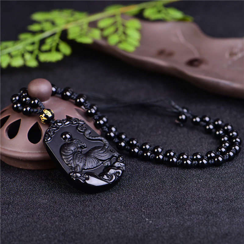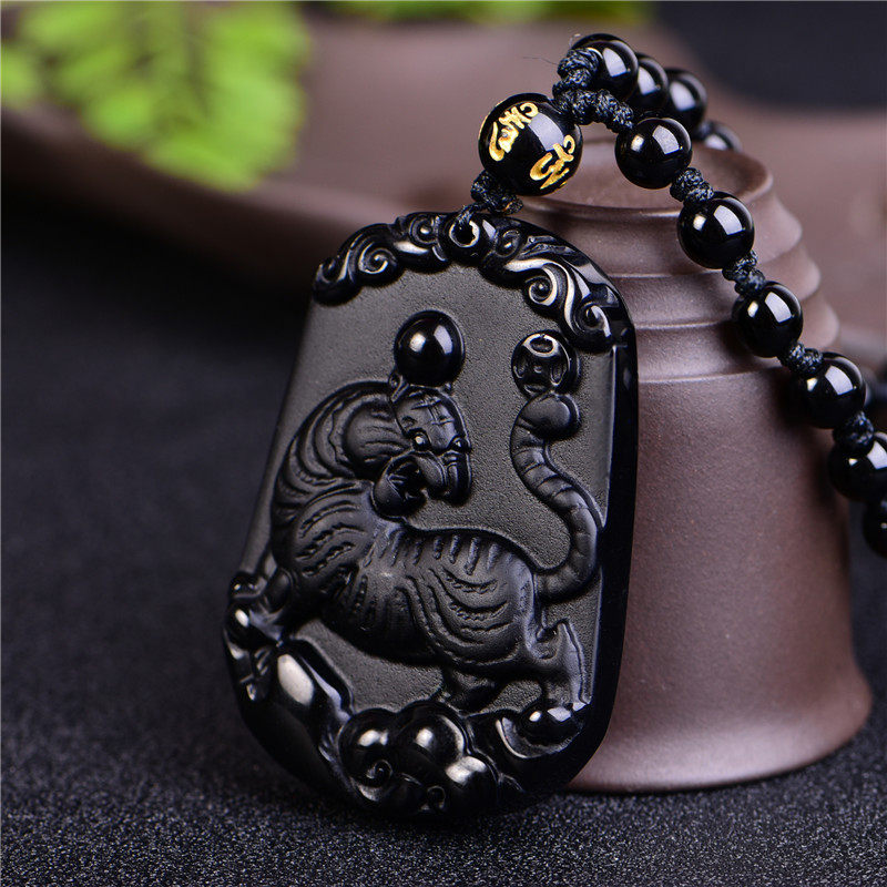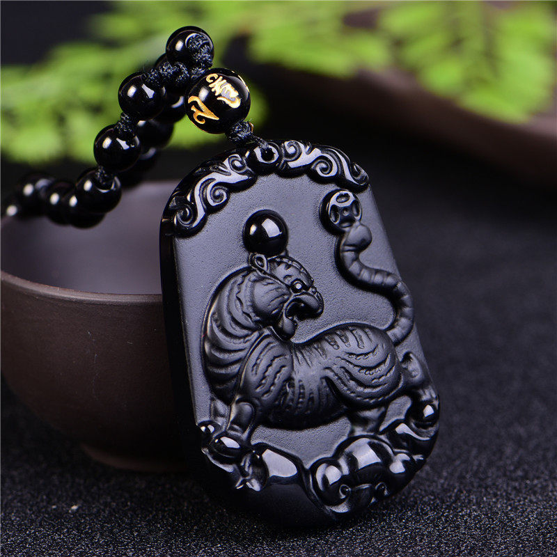 开光天然黑曜石吊坠 生肖属虎挂件 男女款 六合贵足 寅化齐福