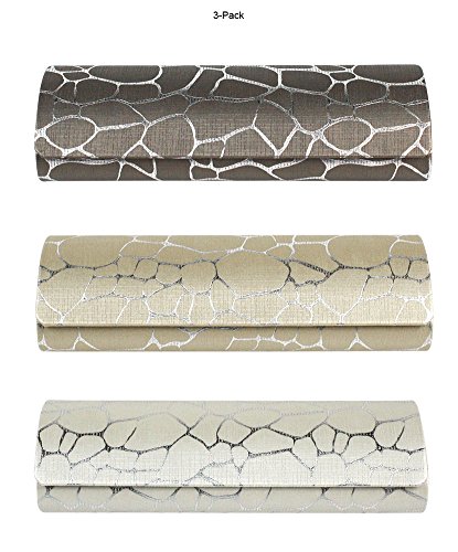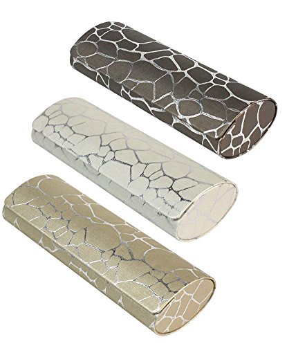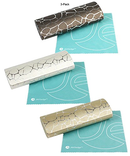 [3 PACK], JAVOedge Various Theme Pattern Long Oval Hard Glasses Case Includes Microfiber Cleaning Cloth