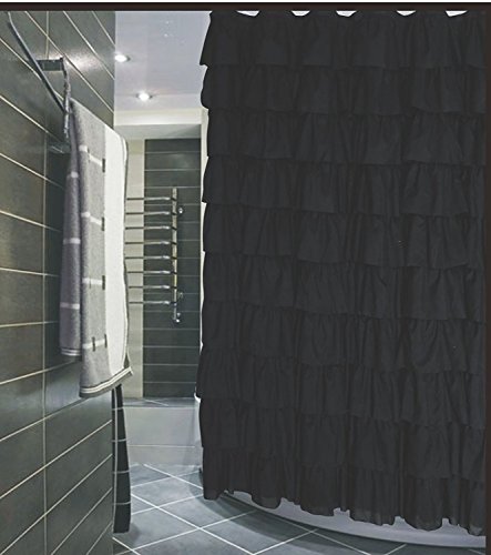 [Product Information]- 10 layer fabric Ruffled black color Shower Curtain