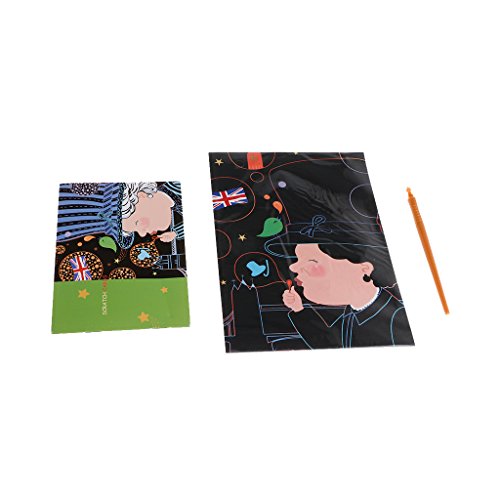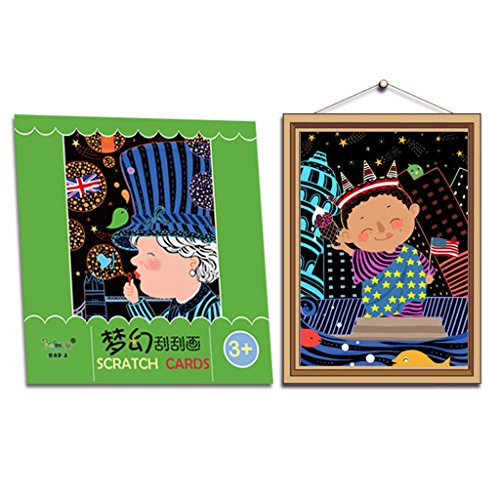 Features: 100% brand new and high quality. Easy arts and crafts project for children in the classroom, afterschool care, daycare, camps, recreation programs, or at home. Kids can create colorful art by scratching off the black coating to reveal multi-colors. Scratch boards are non-toxic, safe for kids, and trusted by teachers. You never know what color it will show when you scrape the surface with the scratch pen. Scrape it and see what beautiful color under the black coating, it will give you surprise. The book size is around 21.5*22.7cm, including total 5 sheets. Specifications: Item Name: Scraping Painting Book Material: Paper Color: shown as pictures Size: 21.5×22.7cm/8.46×8.94in (Approx.) Number of pages: 5 sheets Theme: Travel Country Series Type: #1: Britain, Japan, U.S.A, Thailand, France / #2: Australia, China, Russia, Germany, Italy (Optional) Gender: Unisex Age Range: > 3 years old Quantity: 1 Set (other accessories demo in the picture is not included) Note: 1.Transition: 1cm=10mm=0.39inch 2.Please allow 0-1cm error due to manual measurement. pls make sure you do not mind before you bid. 3.Due to the difference between different monitors, the picture may not reflect the actual color of the item. Thank you! Package includes: 5 X Scratch Painting Paper (No retail package) 1 X Scratch Stick 0