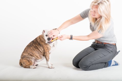 Studio : Arm and Hammer Publisher : Arm and Hammer Binding : Misc. Product Description Cleans and deodorizes with the power of baking soda. The Arm Hammer name has been trusted for over 100 years for gentle yet effective cleaning. We now offer Arm Hammer dental products for your dog to safely clean and maintain healthy teeth! Product Detail: Clean your dog's teeth and gums with this toothbrush. Featuring an alternating rubber and bristle head, the toothbrush ensures a complete clean for optimal dental health. The ergonomic handle promotes comfortable, easy use. Directions: For first time brushers, put a small amount of toothpaste on your finger and invite the dog to lick it off (toothpaste not included). Slowly progress to rubbing your finger along the gum line and teeth, then put a small amount of toothpaste on the toothbrush and do the same. Always make this a positive experience for your dog. For best results, brush 2 3 times per week. Alternating rubber and bristle head ensures optimal cleaning Warning: Keep out of reach of children. This product is not a toy. Not intended for human use. 0