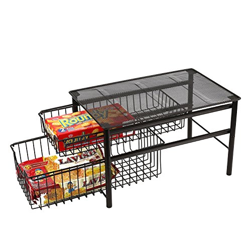 - Stackable and Removable.Stackable Sliding Basket Provides An Easy Way To Access. The Slide Out Shelves pull In And Out Easily.