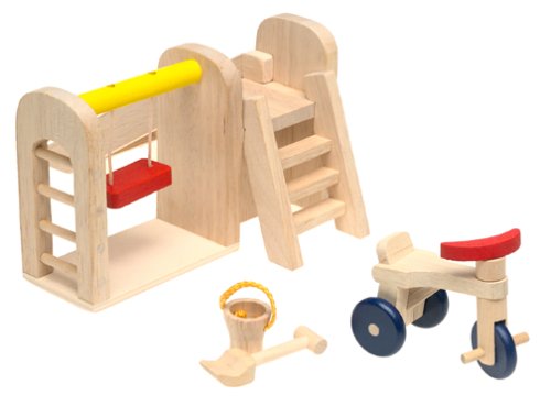 - Feature : Send the dollhouse children out to play on the Play Around Playground set from the Small World Toys Ryan's Room Dollhouse collection / This wooden playground set makes a wonderful addition to your Ryan's Room wooden doll house (sold separately) / 8-piece wooden set includes: swing set with a slide, swing, and climbing bars, see-saw, tricycle, sandbox, shovel and bucket / Swingset measures 6.75''W x 7.75''D x 4''H; suitable for children ages 3 and up / For 50 years, Small World Toys has delivered fun, safe, innovative and endearing products for children of all ages