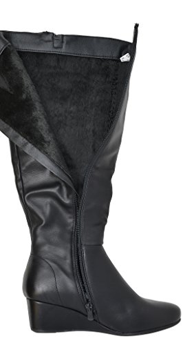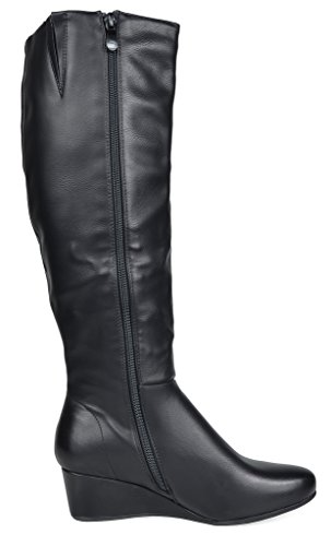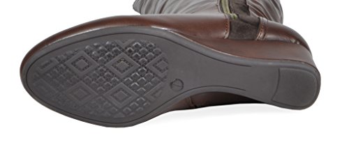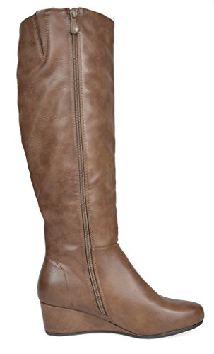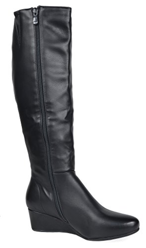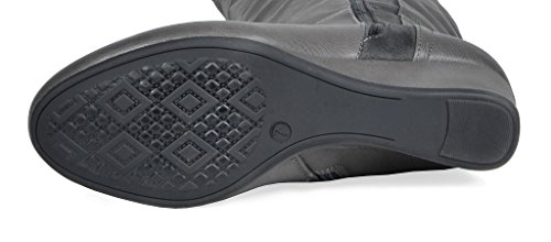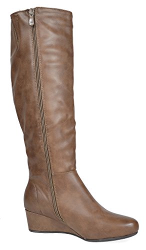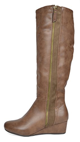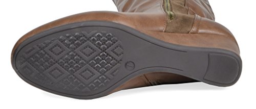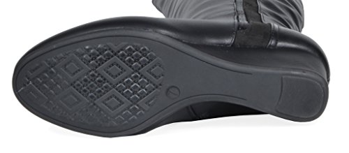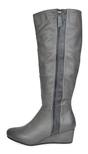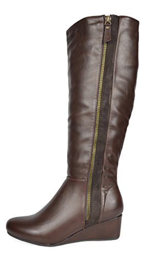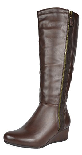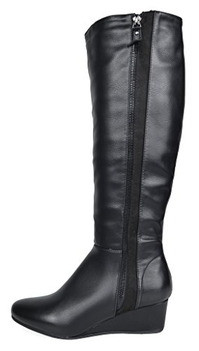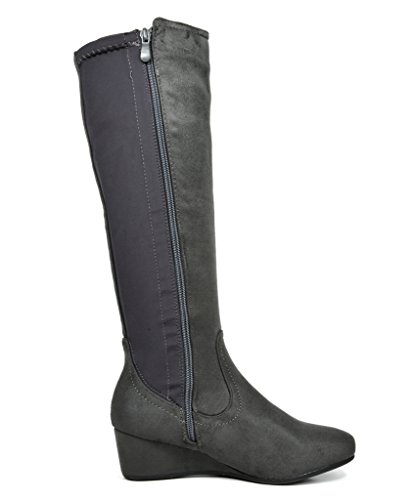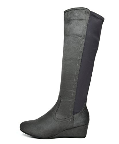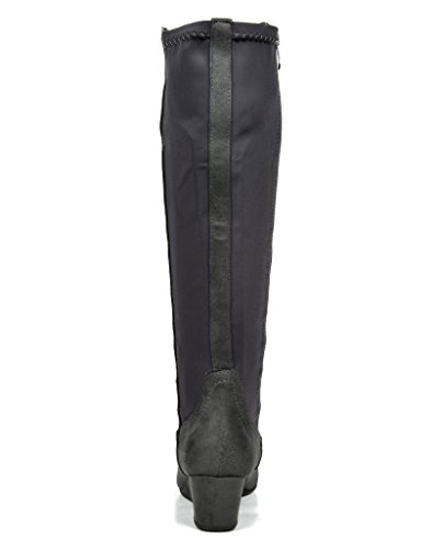 Binding : Apparel Product Description Knee-high mixed media boots feature a decorative zipper and elastic textile design for an in trend style and a vegan leather uppper material with stitching detail down the shaft for a classic look. Shoes are finished with a rounded toe, a low wedge heel, a soft flexible sole, and a side zipper for easy on and off. 0