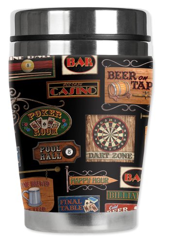 Mugzie Man Cave "Mini" Travel Mug with Insulated Wetsuit Cover, 12 oz, Black