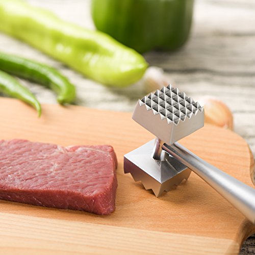 Studio : Zonkin Publisher : Zonkin Product Description Features: 1.The tenderizer head has both a flat and a raised surface for all types and cuts of meat. 2.Ergonomic handle design, handle hook, hanging on the wall, saving space. 3.The meat hammer is not easy to deform, the kitchen must have the tool, the use is convenient. 4.Designed for kitchen,cooking,outdoors,home furnishing ect. 5.With unique design and best selection, it is a great way to present to customers boutique product. Specifications: 1.Product material: Food grade 304 stainless steel and ABS 2.Tenderizer length: 8.66 inches 3.Tenderizer high: 2.4 inches 4.Product weight: 320 g 5.Makes any boneless cut of pork,venison,veal,fish,chicken,lamb,steak and other meats. Note: 1. Due to different measurement methods, the size and weight of the product may have a slight error. 2. Hand wash only,please don't put in dishwasher. Package includes: 1 x Zonkin Meat Hammer Our products are well tested before delivery,please feel confortable to buy, If any problem, please feel free to contact us,we'll help you at once. 0