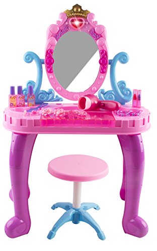 -. Title : Princess Vanity Girl's Children's Pretend Play Crown Dressing Table Battery Operated Toy Beauty Mirror Vanity Playset w/ Accessories, Flashing Lights, Sounds