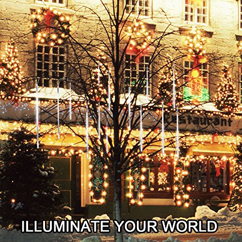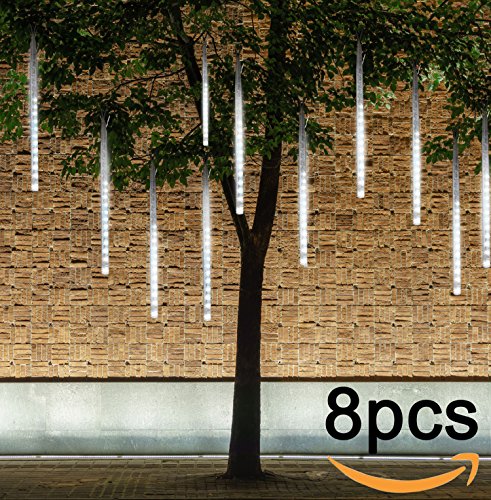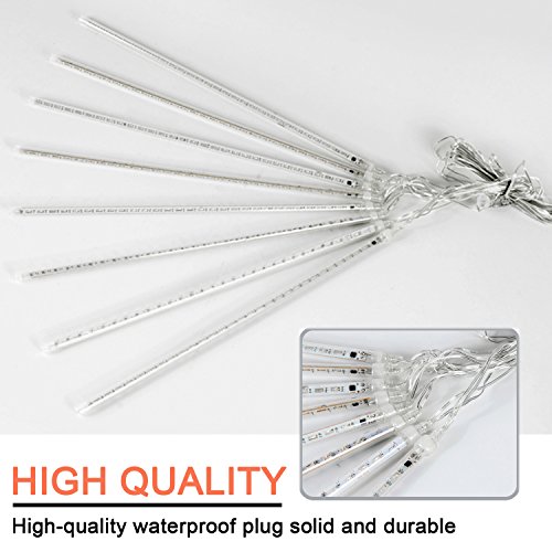 Falling Rain Lights, Ubegood Meteor Shower Lights Waterproof with 30cm 8 Tubes 144 LED Icicle String Lights for Holiday Party, Wedding, Christmas Decoration (White)